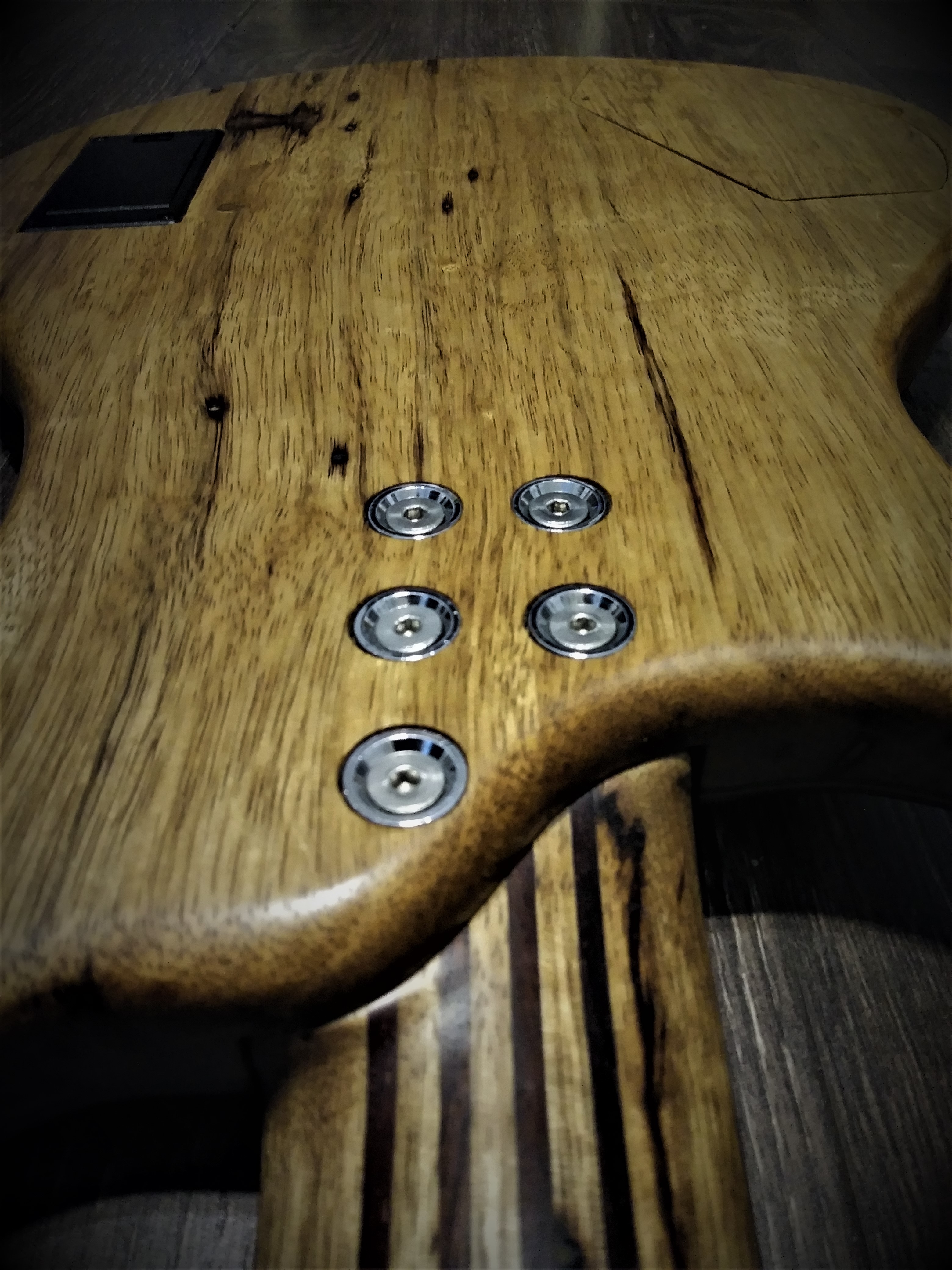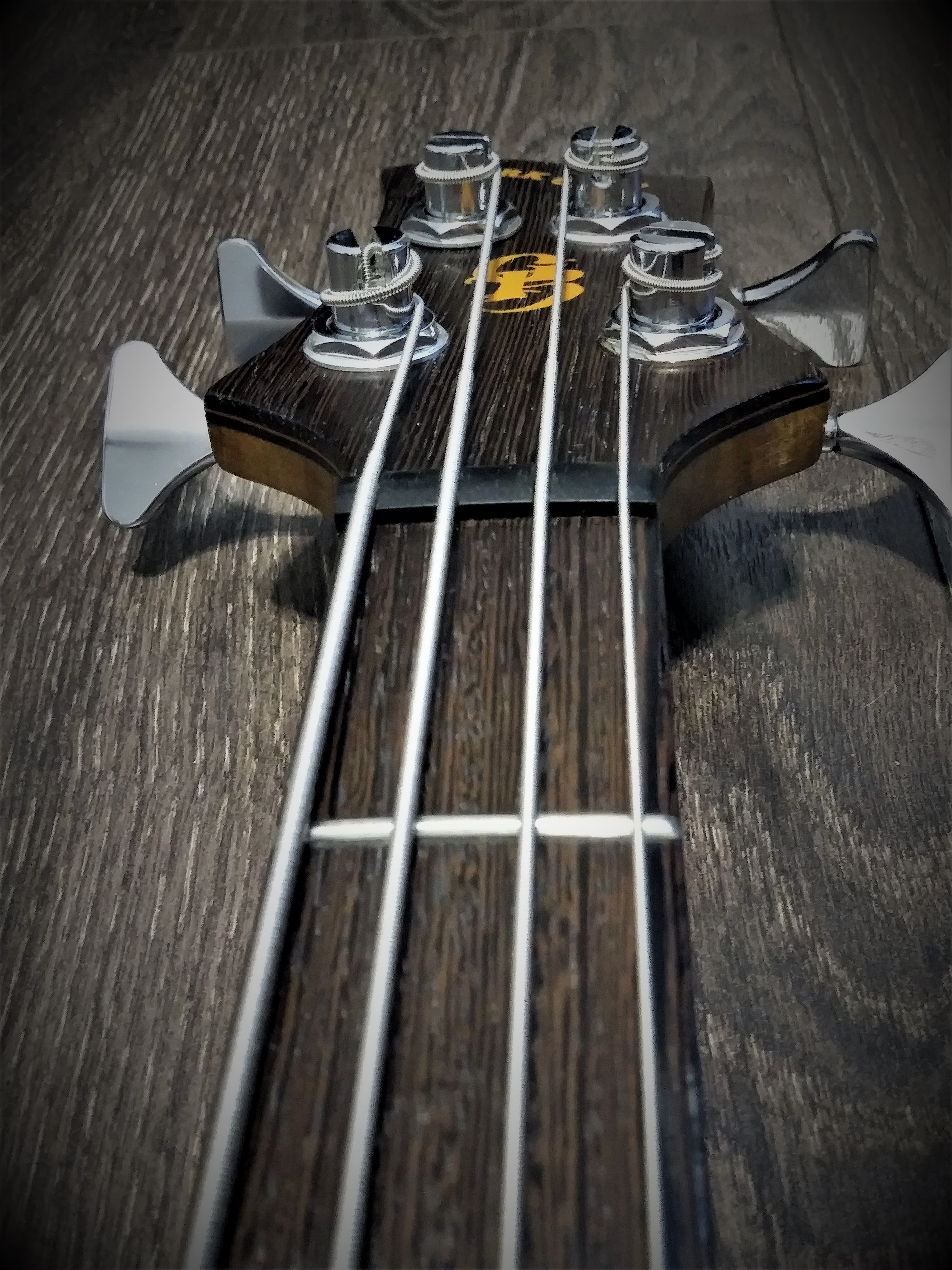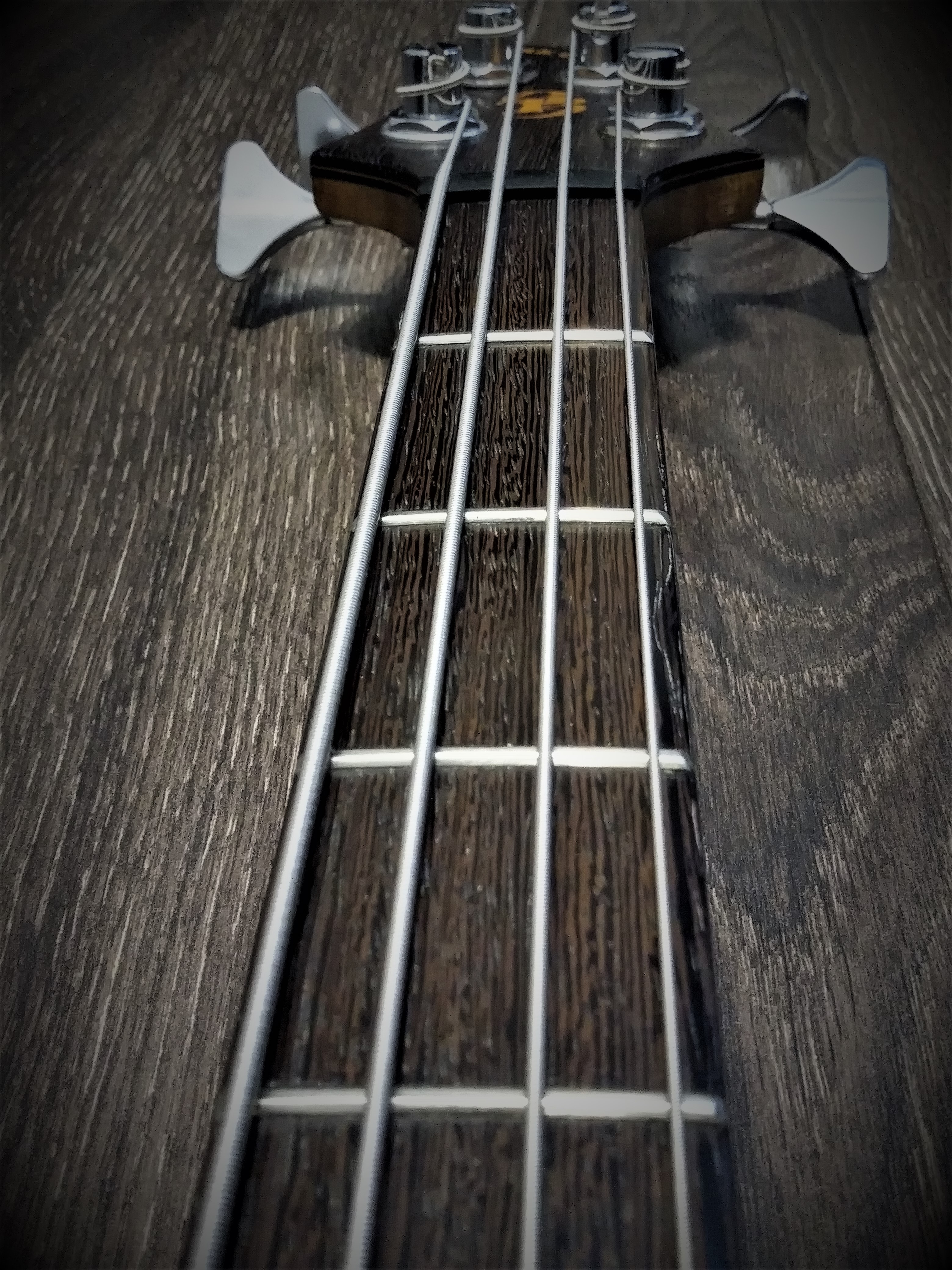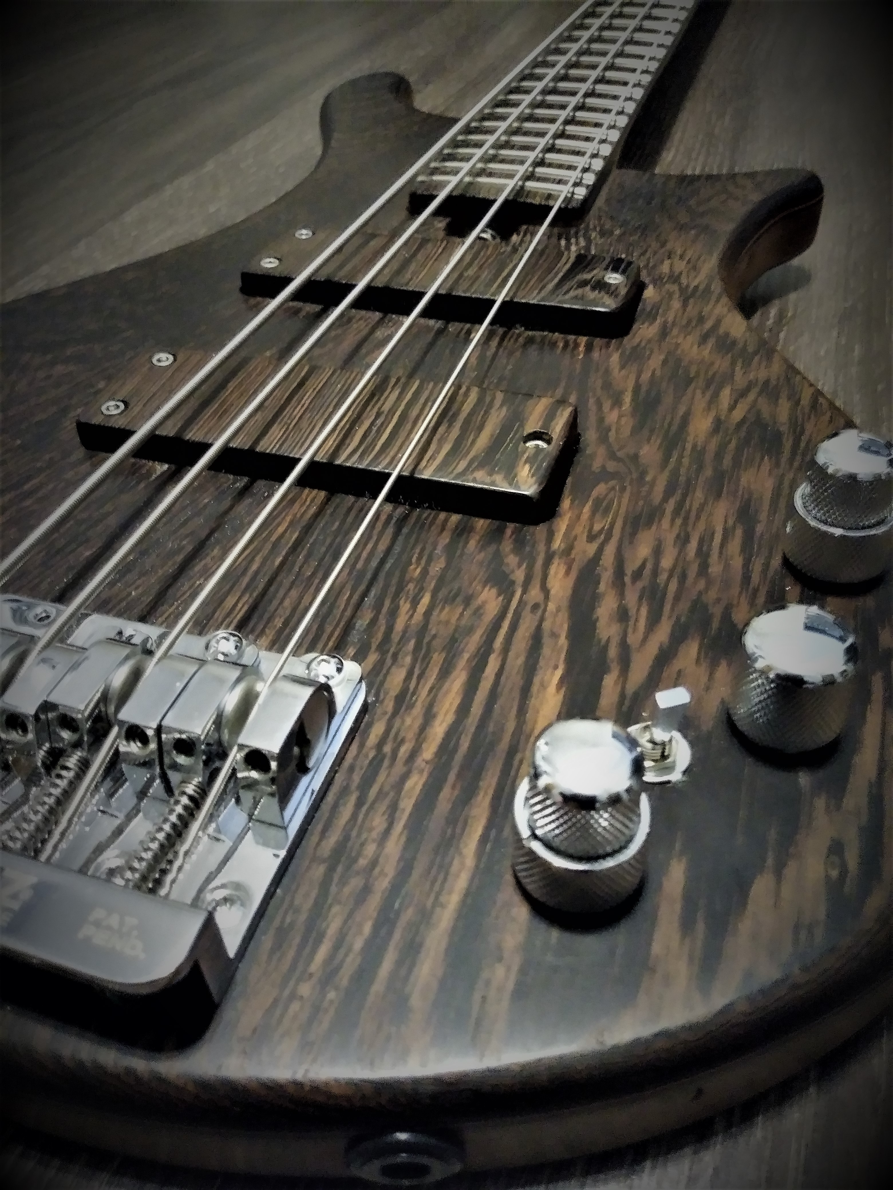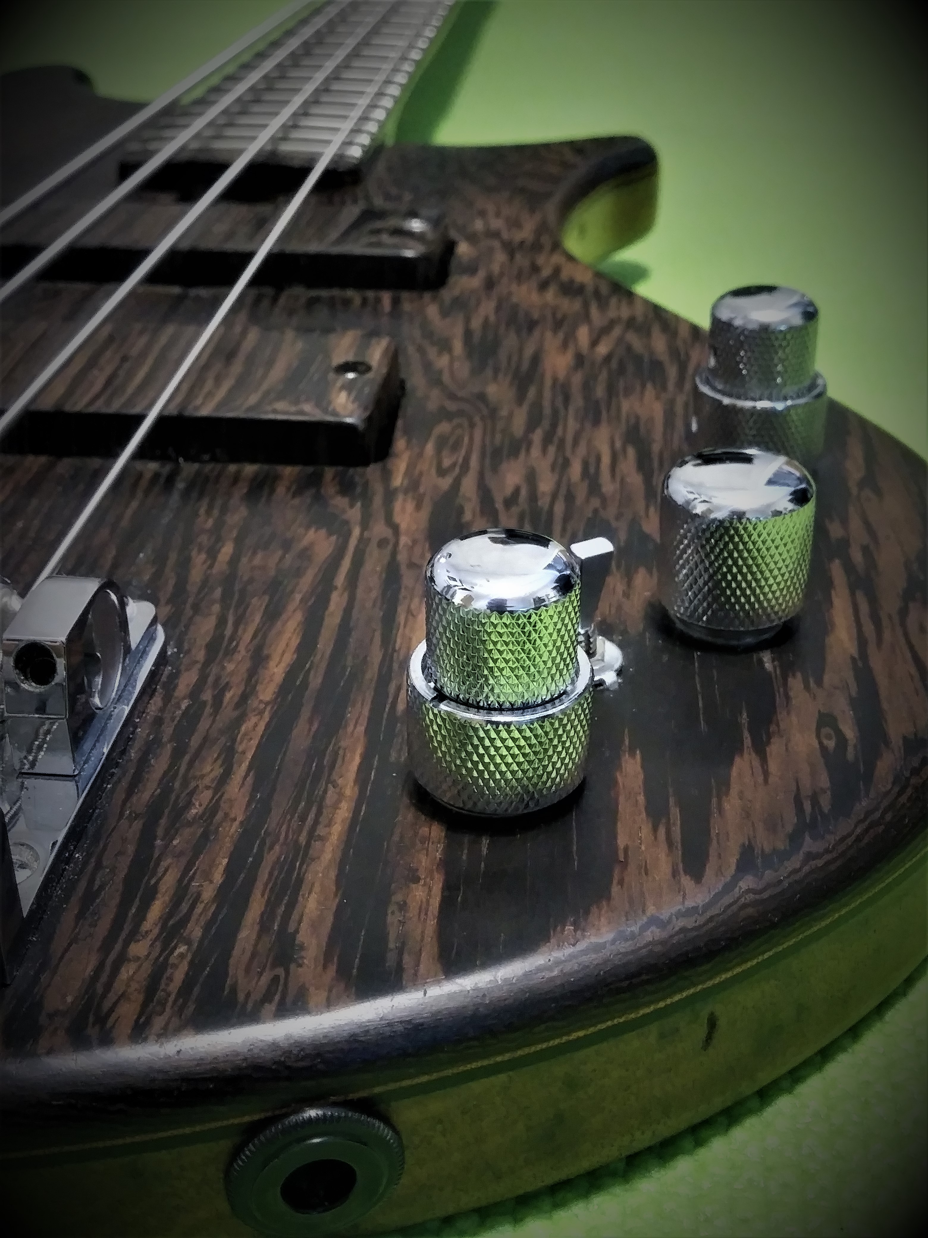 - Controls: Stacked Bridge and Neck Pickup Volume, Mid, 3-Way Mid Switch, Stacked Bass and Treble