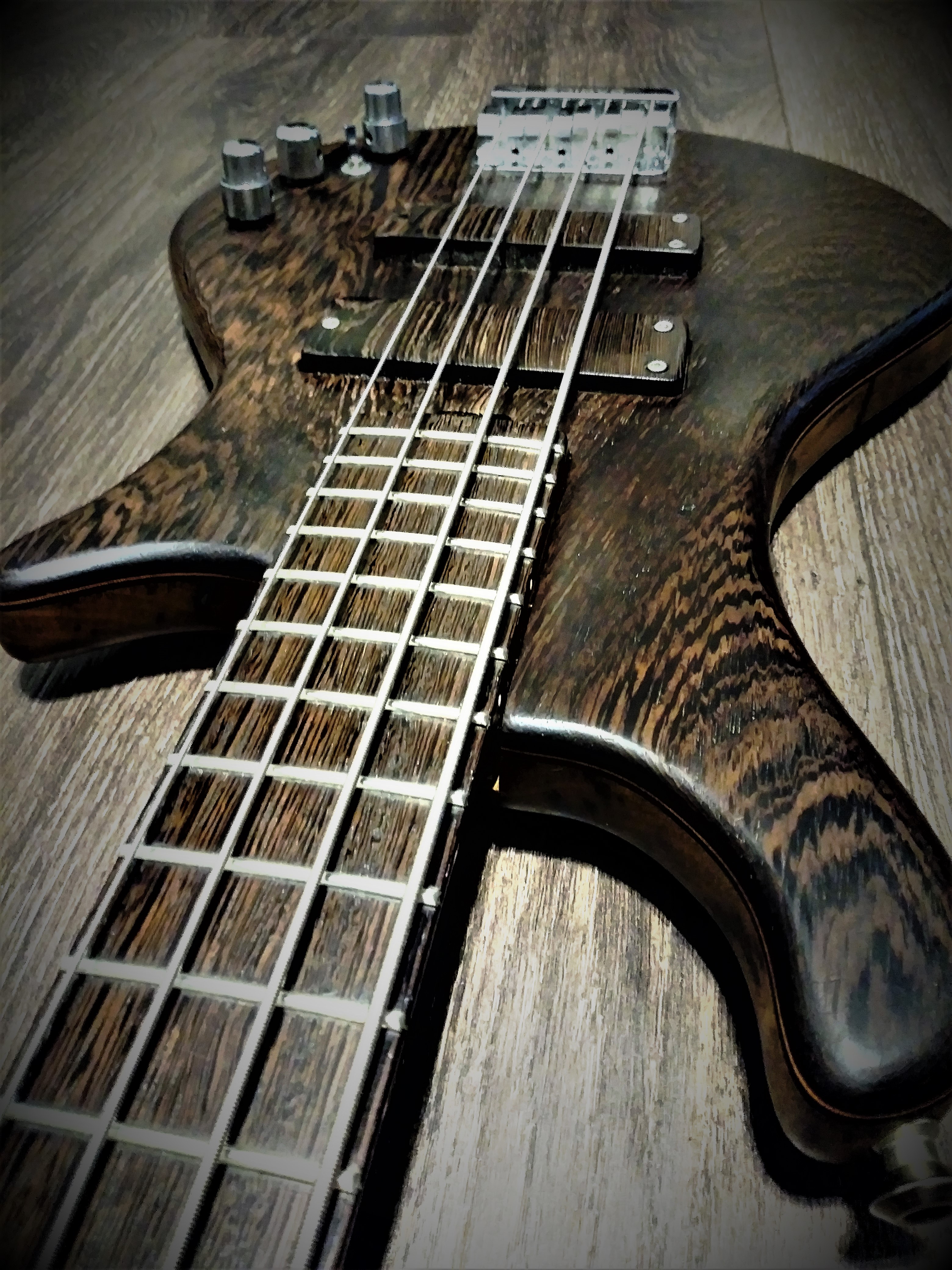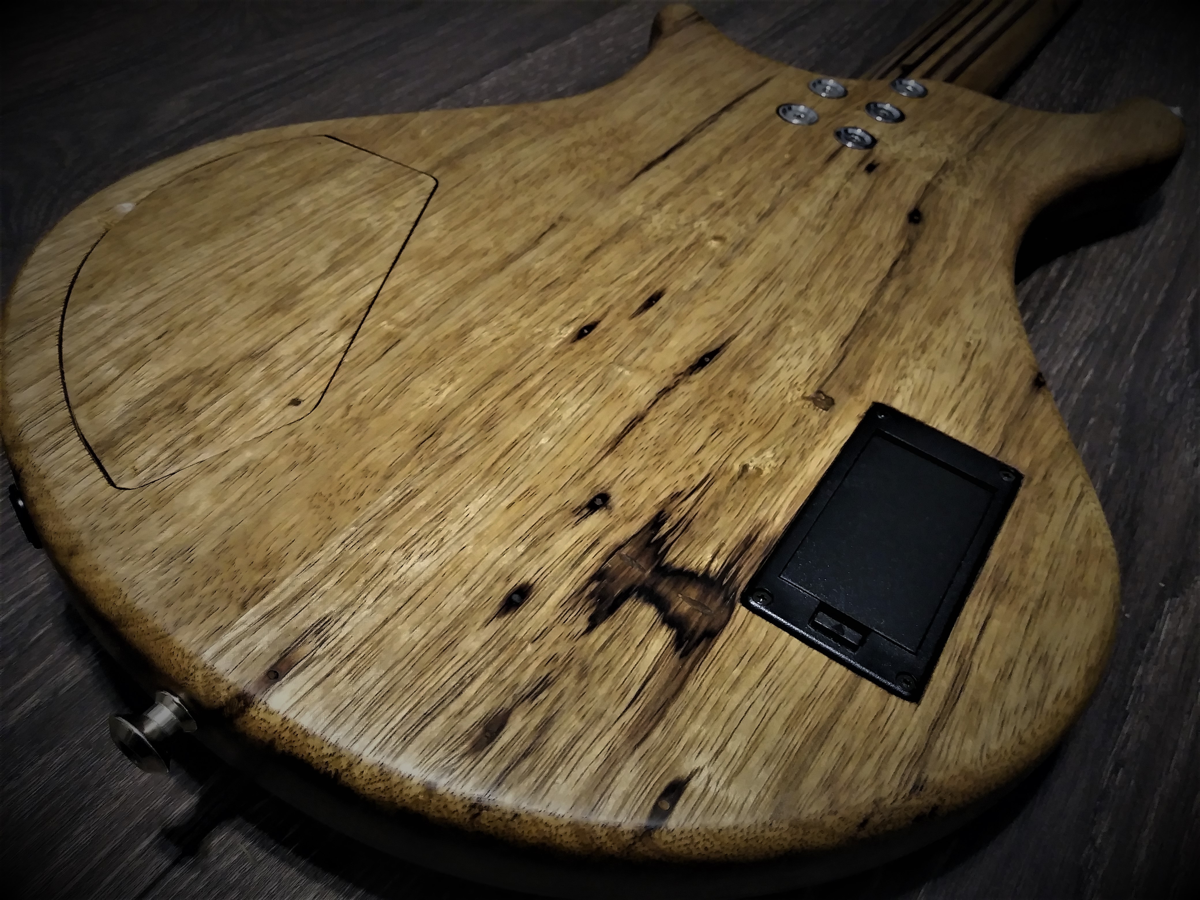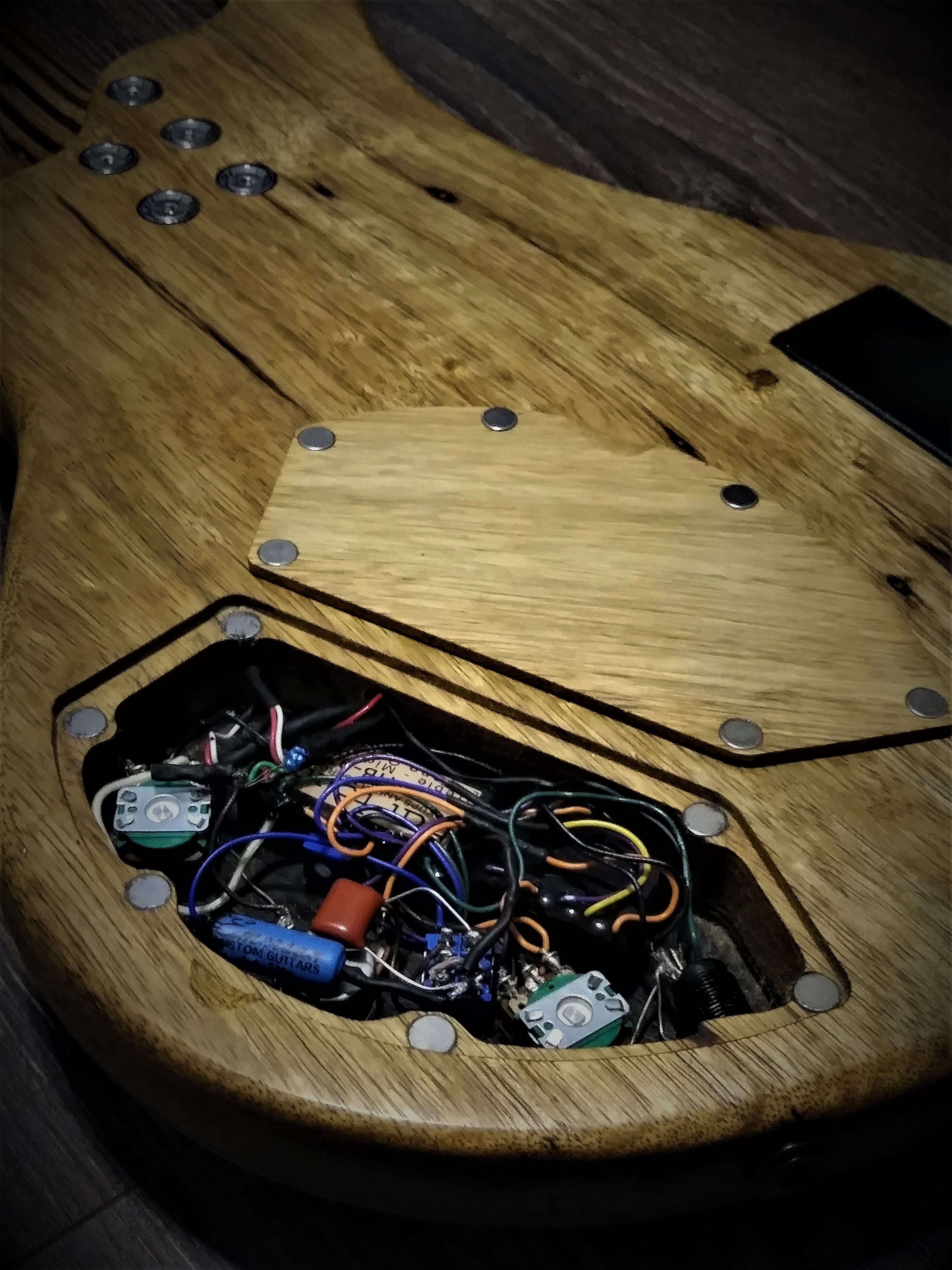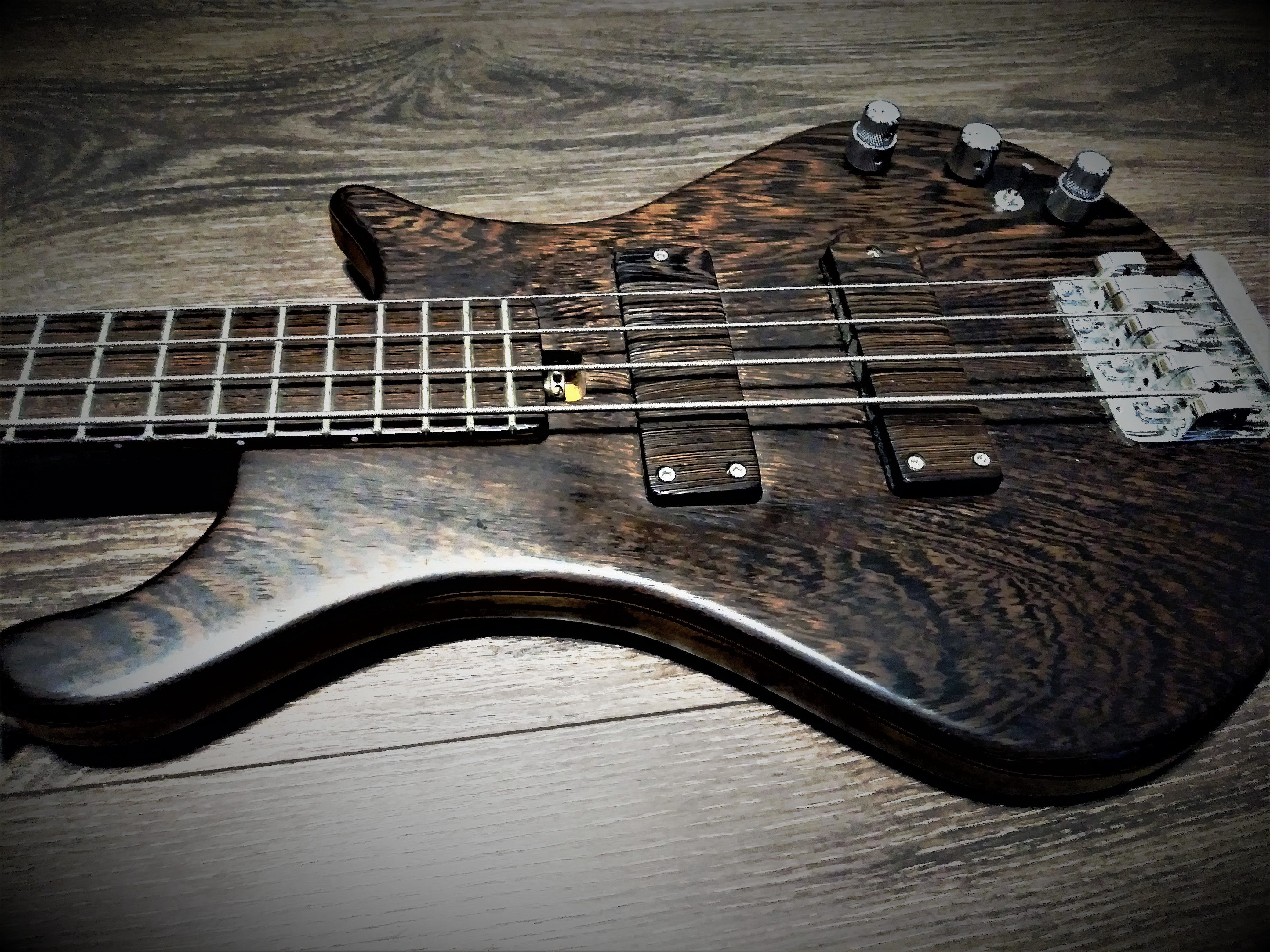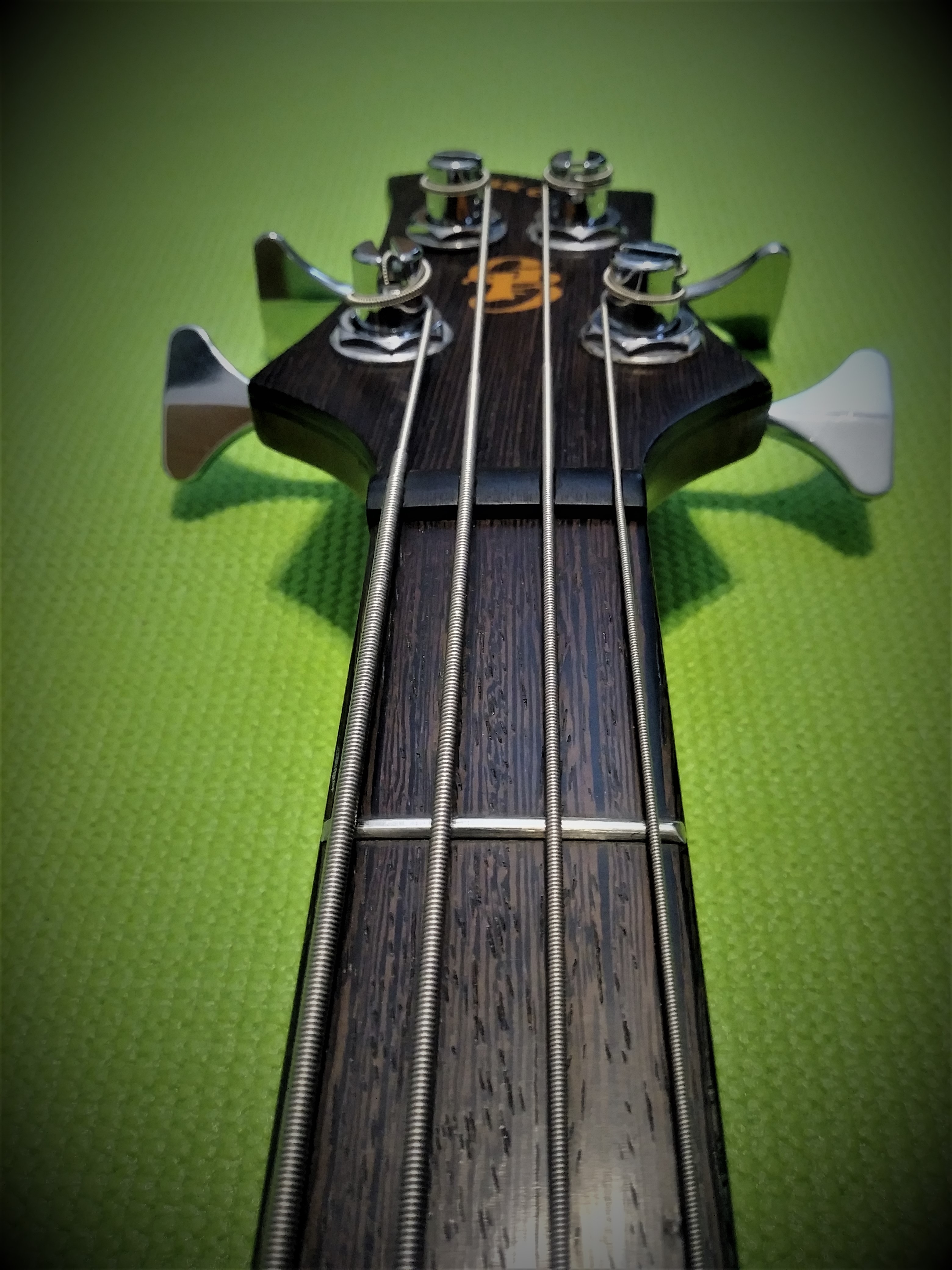- Controls: Stacked Bridge and Neck Pickup Volume, Mid, 3-Way Mid Switch, Stacked Bass and Treble